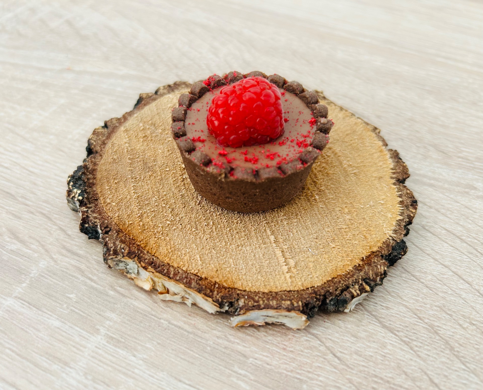kakaový korpus, malinová náplň, mliečna čokoládaalergény: múka, vajcia, mlieko, orechy
